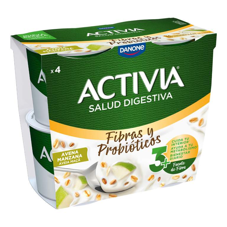 Leche parcialmente desnatada pasteurizada, leche desnatada parcialmente reconstituida, azúcar, jarabe de oligofructosa, manzana (2%), trigo (0,4%), avena (0,3%), cebada (0,3%), salvado de trigo (0,2), nueces (0,1%), aromas, jarabe de azúcar quemado, canela (0,01%), sal, bifidobacterias y fermentos lácticos. Origen de la leche: España. Puede contener trazas de otros cereales con gluten y otros frutos de cáscara.