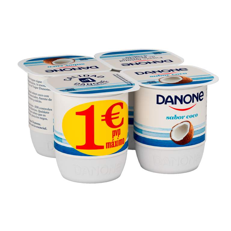 Danone Coco x4 es un pack de 4 yogures con un sabor único y delicioso a coco. 100% yogur con nutrientes esenciales, fuente natural de proteína y calcio.