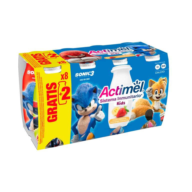 Denominación legal: Leche fermentada semidesnatada con fresa y plátano. Con vitaminas D y B6.